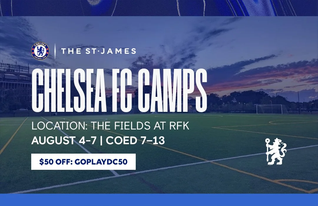 Chelsea FC Youth Soccer Camps are led by elite Chelsea FC Foundation coaches using the same approach and methodology that are used to develop elite players at the Cobham Training Centre in the UK. Use the promo code GOPLAYDC50 to receive $50 off your registration.
